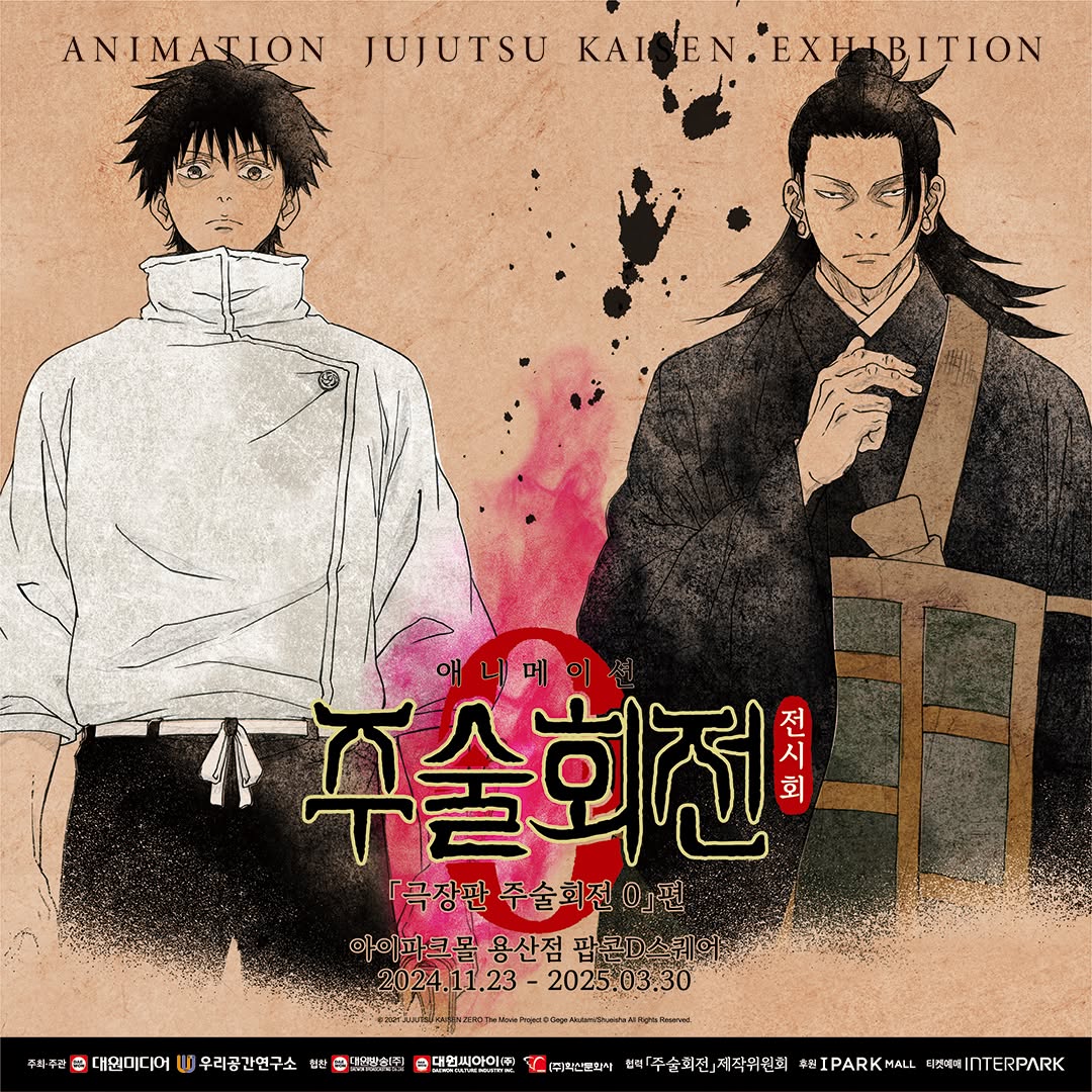 정보드디어 주술회전 0 전시회가 한국에 상륙합니다!! 국내 최초로 열리는 주술회전의 특별한 전시가 아이파크몰에서 펼쳐진다는데요 🎉 주술회전 세계관을 그대로 느낄 수 있는 공간에서 유타, 겟토, 고죠 선생님까지 만날 수 있다니 덕후들 설렐 준비 완료 되셨나요?💖📷 instagram @popcon_daewonmedia