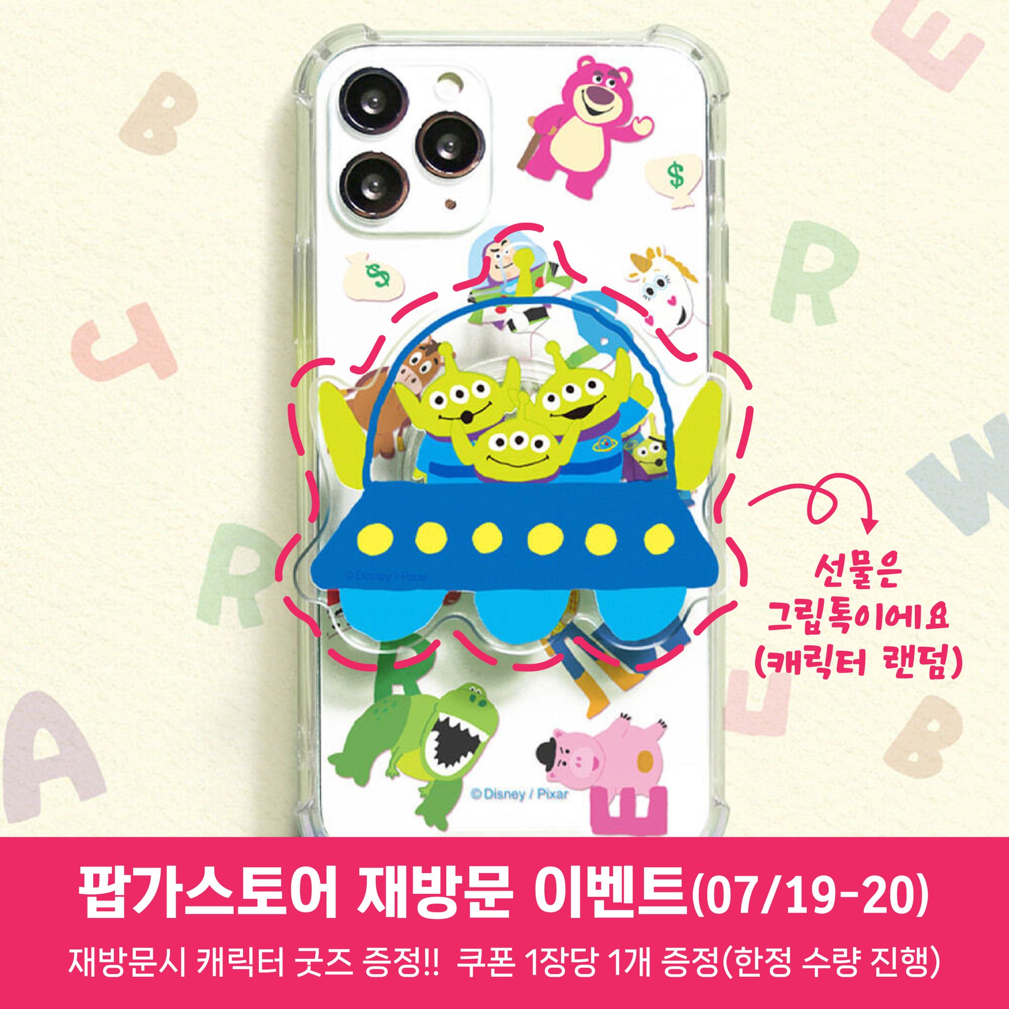 - 쿠폰을 들고 매장 재방문 시, 디즈니 그립톡 증정 (캐릭터 랜덤/한정 수량)
