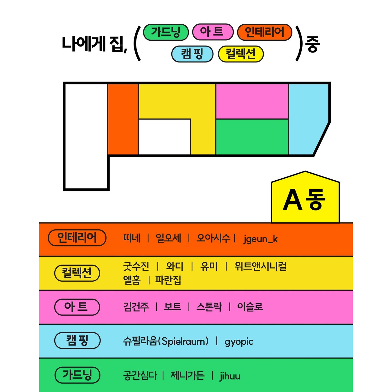 - 컬렉션 : 굿주신, 와디, 유미, 위트앤시니컬, 엘홈, 파란집