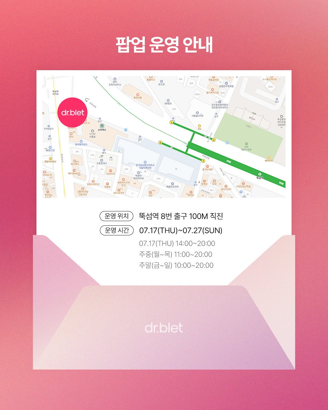 정보닥터블릿의 첫 번째 팝업 스토어가 성수에 오픈합니다.💗 닥터블릿 제품을 현장에서 구경하고 이벤트 참여 후 선물까지 가득 받아가세요!🔥📷 instagram @doctorblet_kr