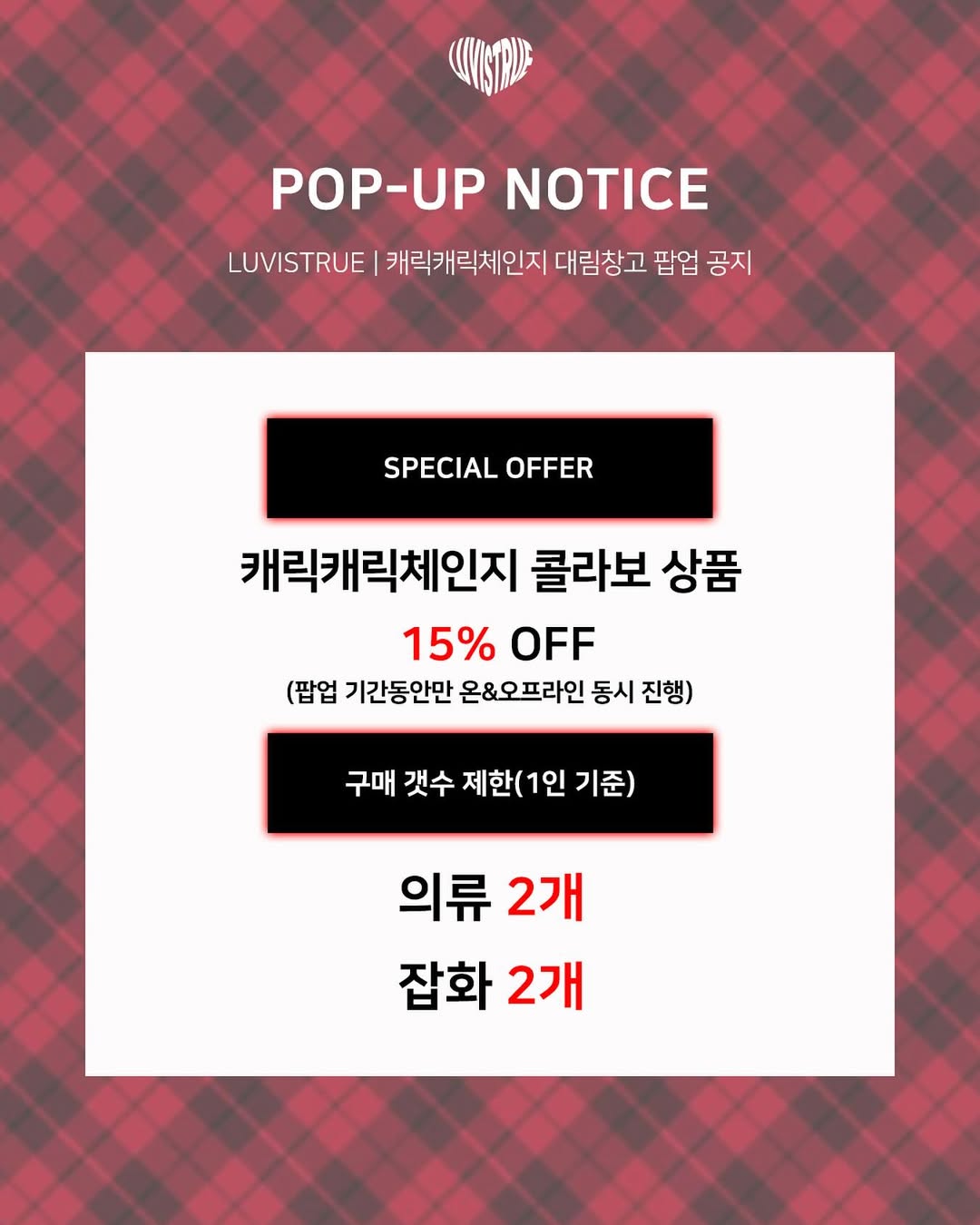📢 1인당 구매 개수 제한 : 의류 2개, 잡화 2개
