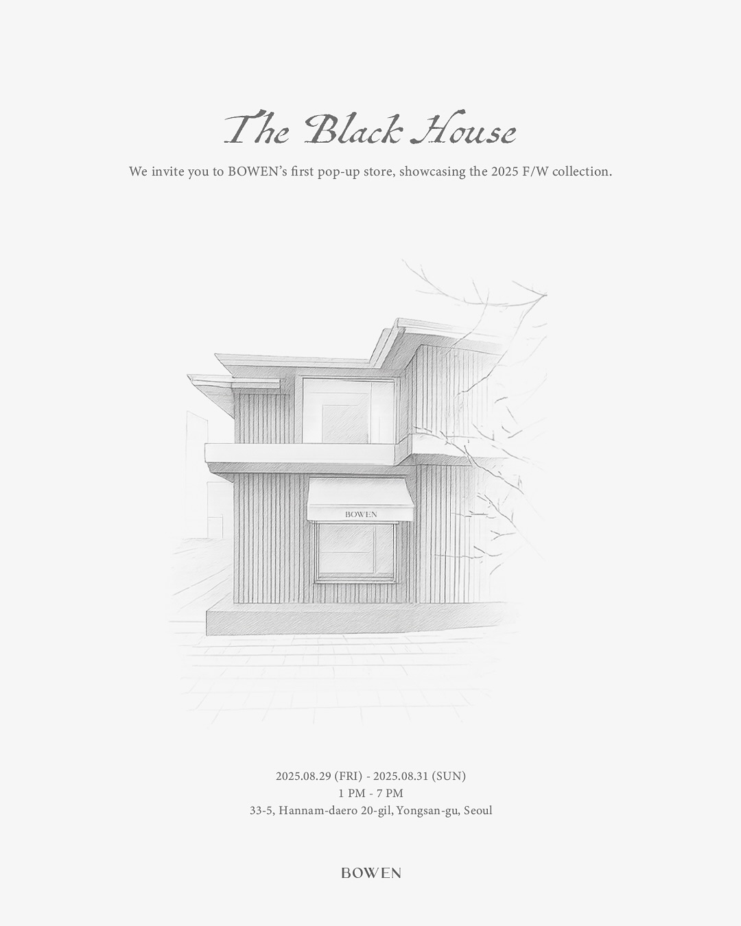 bowen 팝업, The Black House, 한남 팝업, 용산 팝업, 용산, 패션, 사전 예약, 방문 시 선물 증정