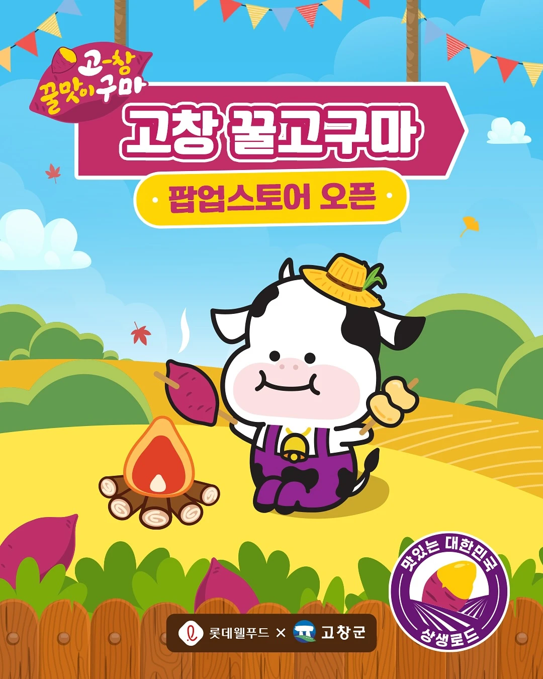 정보고창 꿀맛이구마 팝업스토어에 초대하구마🍠 귀여운 말랑이와 고구마도 뽑아보고 캠핑 의자에서 사진 찍을 수 있는 기회! 고창 꿀맛이구마 제품들도 만나볼 수 있으니 많은 기대 부탁하구마 💥📷 instagram @lottewellfood