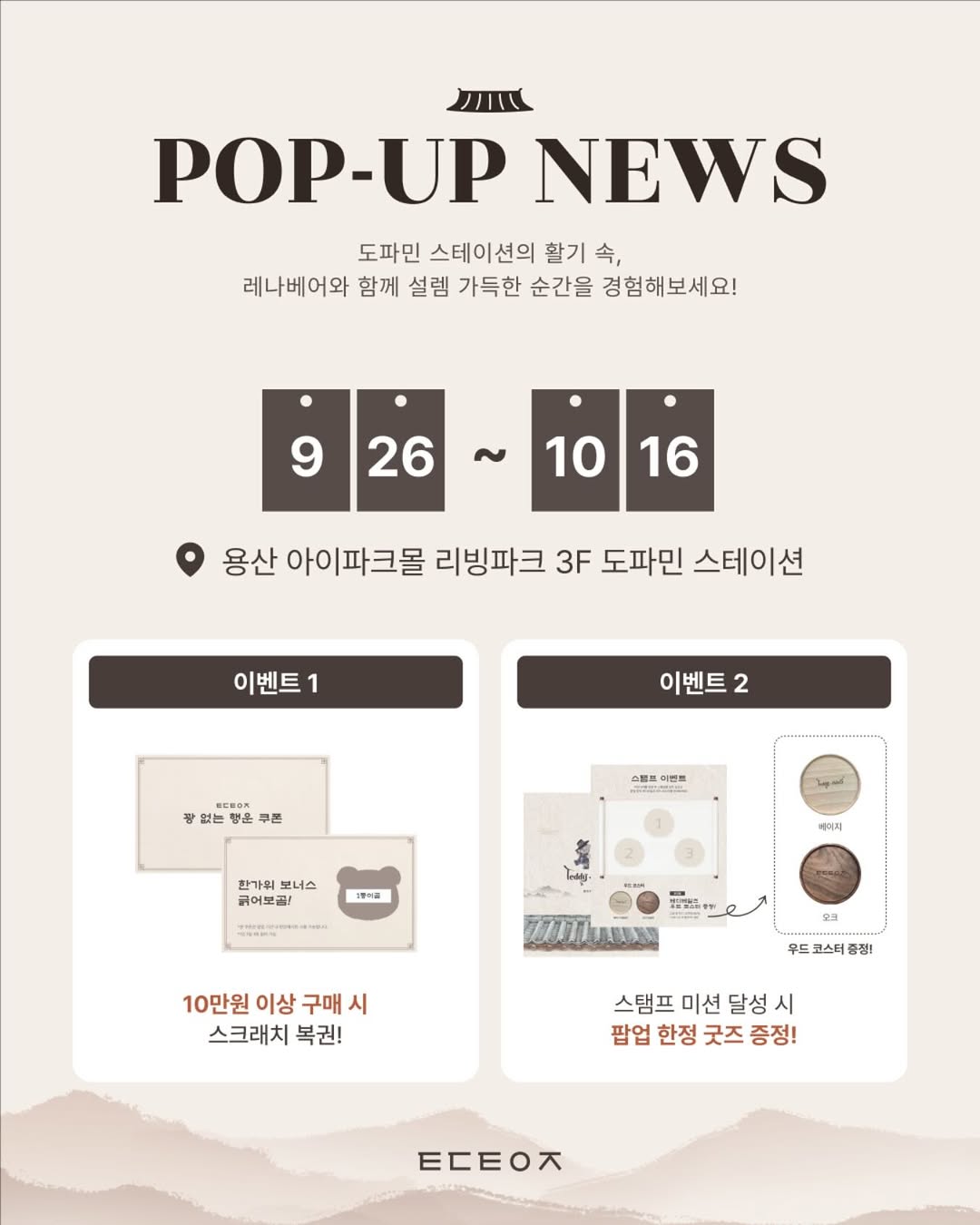 정보테디테일즈 팝업이 용산에 찾아왔습니다 🐻 금 복주머니부터 리틀 페어리 키링까지! 다양한 상품들과 함께 테디테일즈 친구들이 사랑과 함께 여러분을 기다리고 있어요💖 팝업 현장에서 윷놀이 게임도 즐기고, 레나베어와 함께 특별한 추억도 남겨보세요 ✨📷 instagram @teddytales_korea