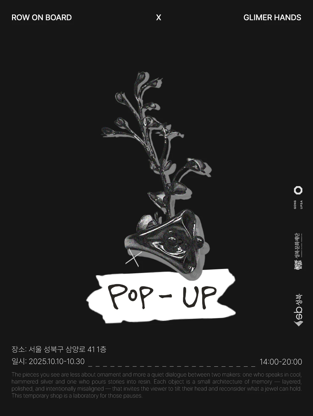 정보실버주얼리 브랜드 ROWONBOARD가 새로운 모습으로 레진아트 브랜드 Glimmer Hands와 만납니다 💎 각 브랜드의 리미티드 에디션과 현장 한정 판매 제품이 가득 준비되어 있다고 해요! To Be a Symbol. 단순한 주얼리를 넘어 고유한 가치를 담은 작품이 되기까지, 당신의 여정에 함께 하겠습니다 ✨📷 instagram @gong_up_sa