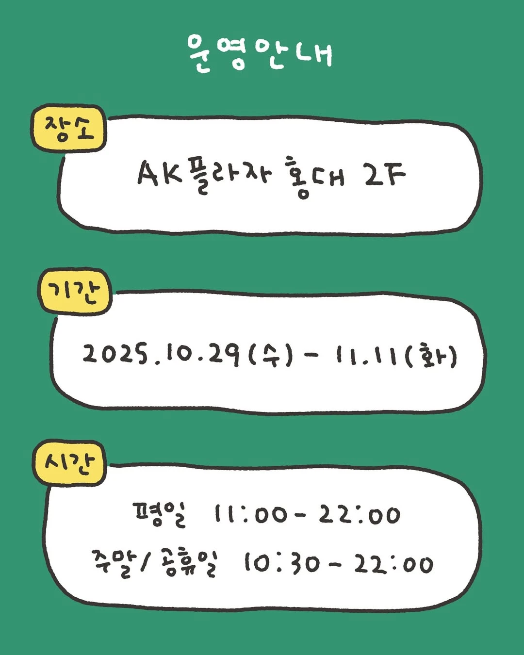 25. 10. 29(수) ~ 25. 11. 11(화)