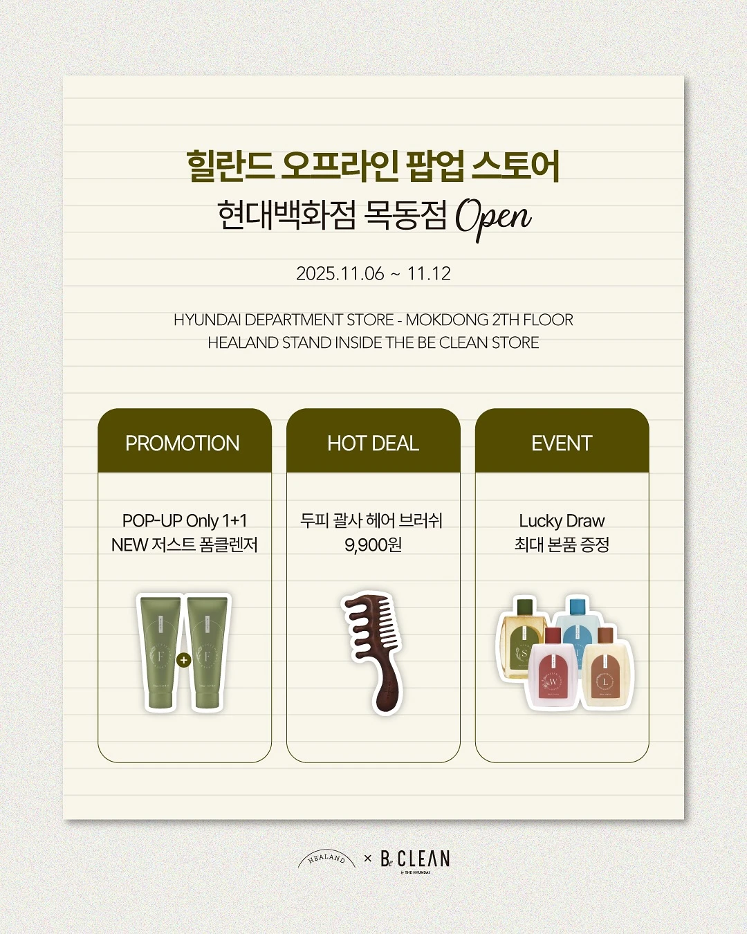 비클린 팝업, 힐란드 팝업, 현대백화점 목동점, 목동 팝업, 뷰티, healand 팝업, beclean 팝업