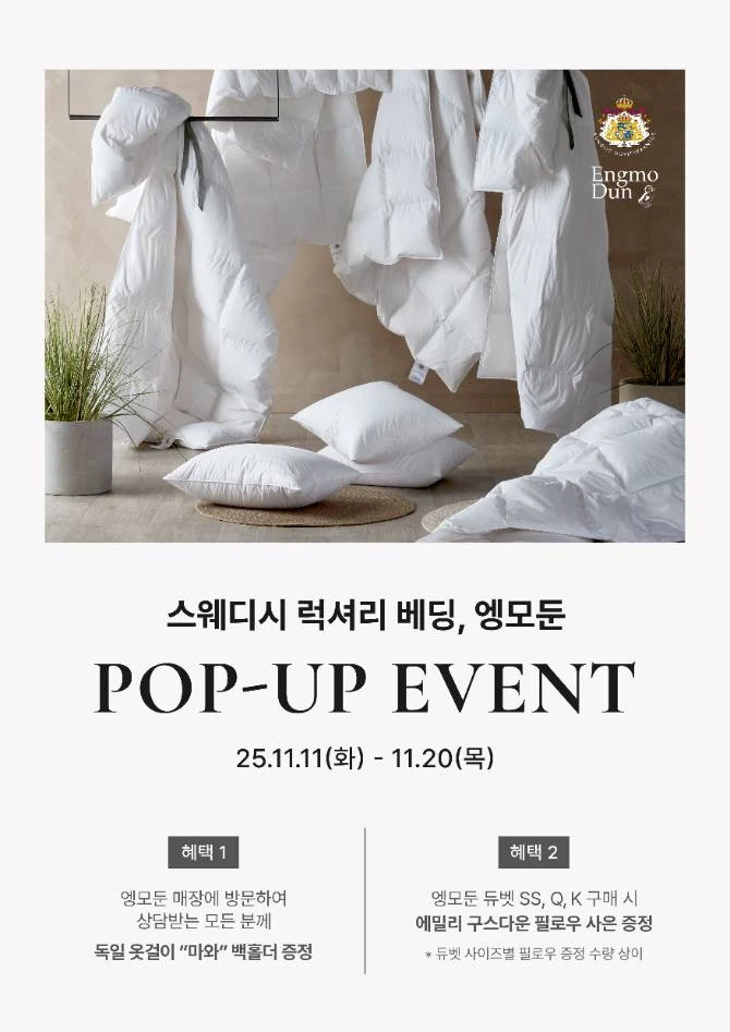 정보스웨디시 럭셔리 베딩 브랜드 엥모둔이 팝업으로 잠실에 찾아왔습니다 🛏️ 결코 사라지지 않는 구름과 같은 편안함, 엥모둔 팝업에서 경험해보세요 ☁️📷 잠실 롯데백화점 공식 홈페이지