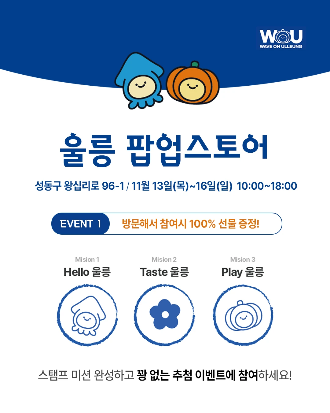 정보울릉도는 닿기 어려운 곳이 아니라, 한 번 닿으면 오래 남는 곳임을 전하고 싶어요 ⛱️ 팝업에서만 즐길 수 있는 다양한 울릉도의 모습과, 귀여운 오기둥이와 해호랑을 만나보세요 ✨📷 instagram @ulleung_popup