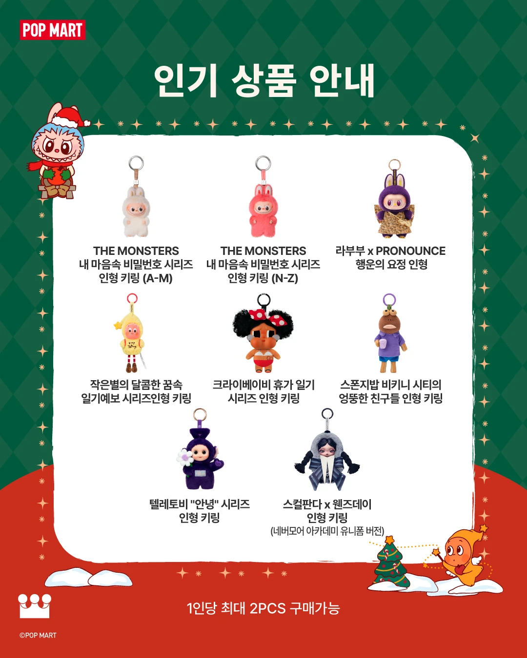 정보라부부부터 몰리까지 모두 만나볼 수 있는 팝마트 로보샵이 롯데타운 크리스마스 마켓에 상륙했어요!🎄 크리스마스 색으로 물든 팝마트 로보샵에서 팝마트 인기 상품 만나고, 선물도 받아가세요 🎁✨📷 instagram @popmart_korea