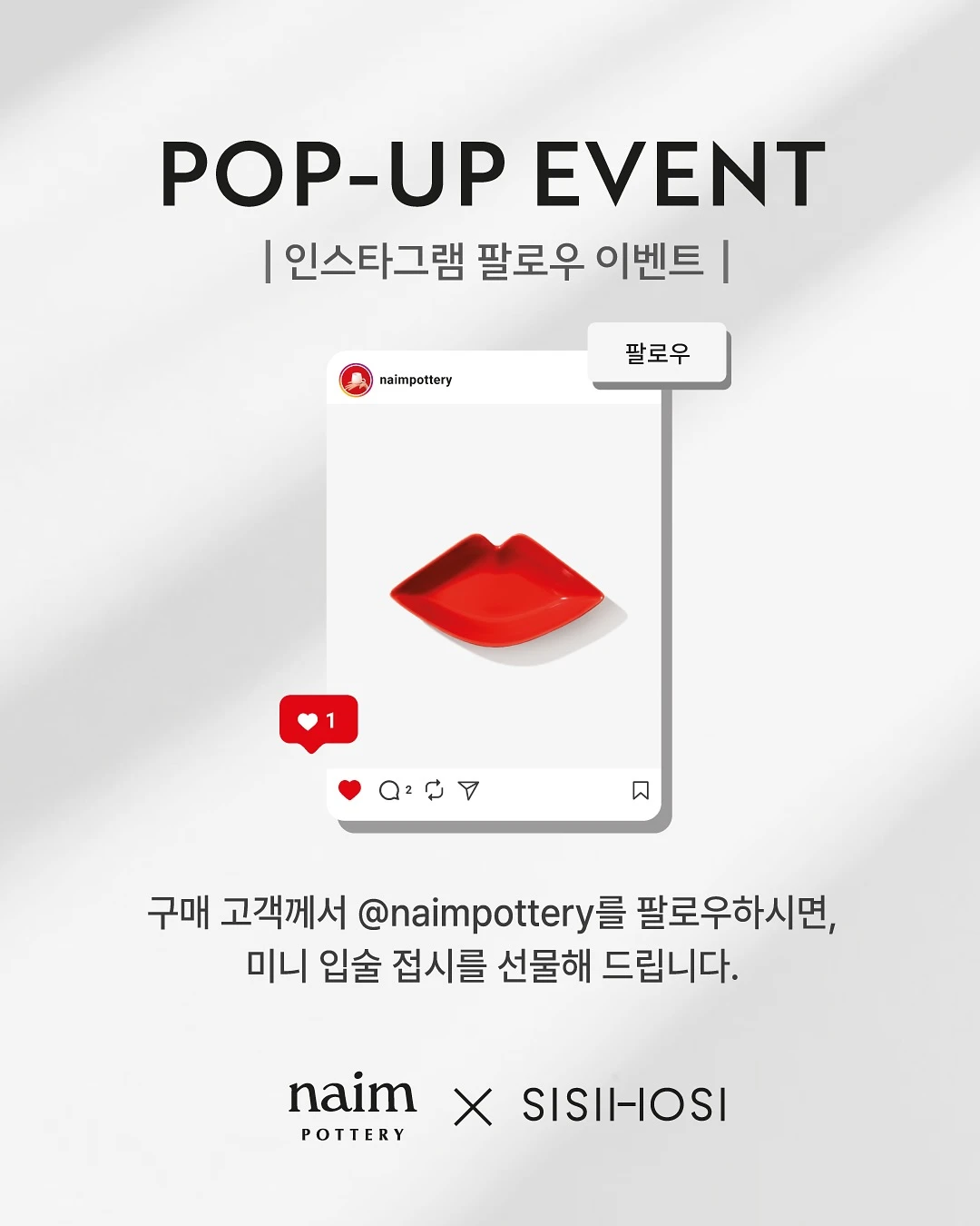 💌 도자기 구매 후 SNS 팔로우 인증 시, 나임포터리의 시그니처 미니 입술 접시 증정