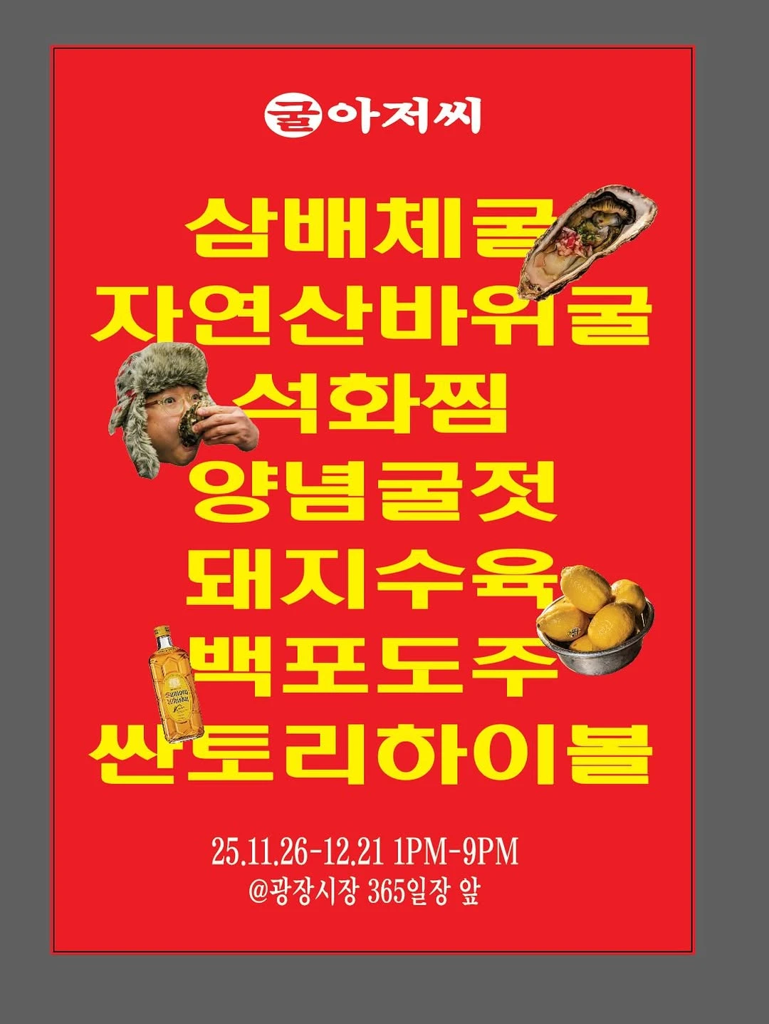 종로, 광장시장 팝업, 굴아저씨 팝업, 노로를 이기자, 굴 팝업, F&B