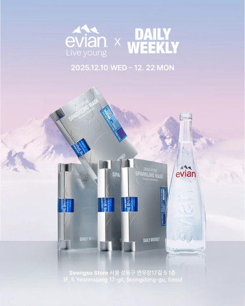 정보데일리위클리 신제품 제로 모공 스파클링 마스크 출시를 맞아 데일리위클리 X 에비앙 콜라보 팝업이 찾아왔습니다 💦 방문만 해도 쏟아지는 선물들! 지금 바로 성수에서 만나보세요 🎵📷 데일리위클리