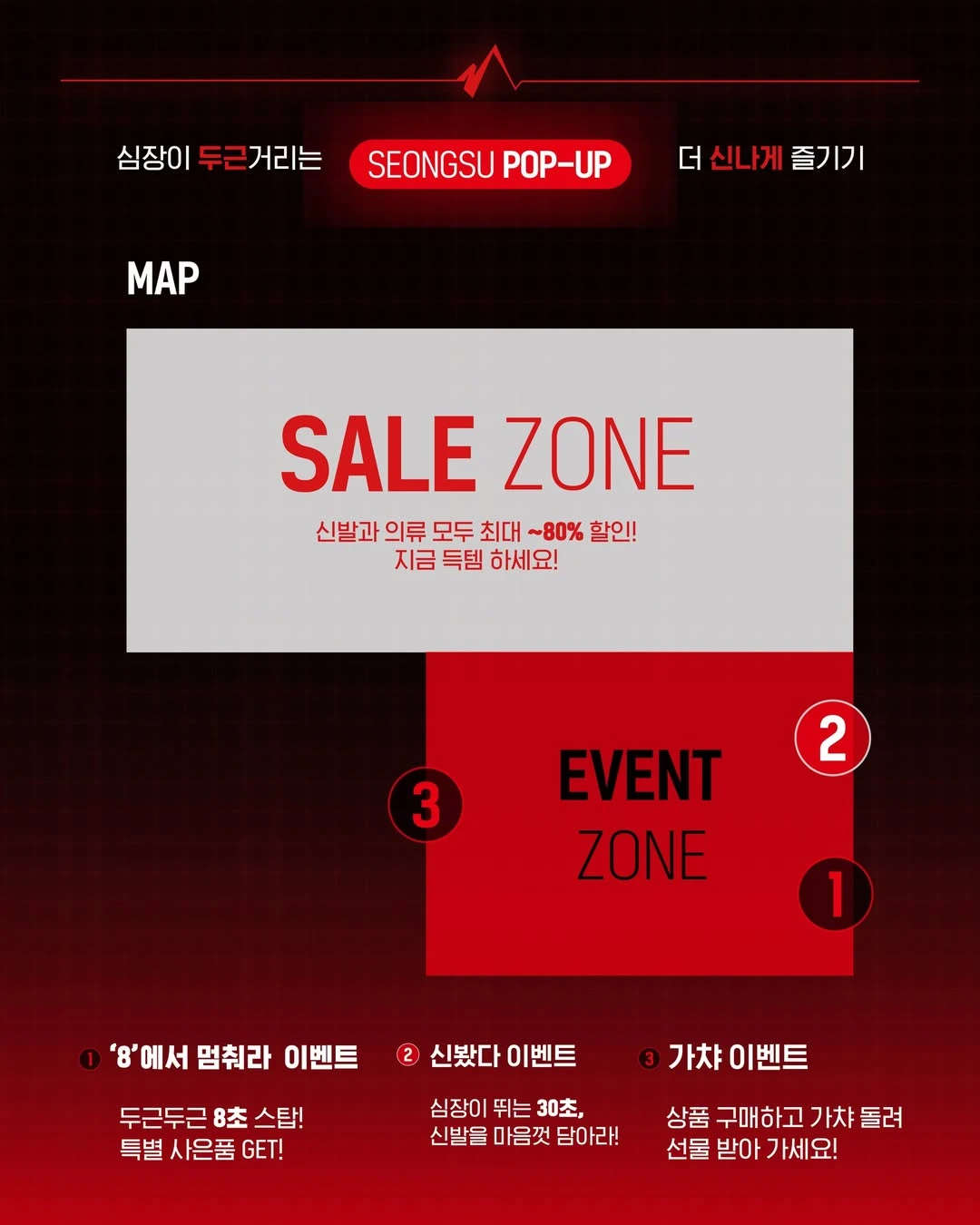 [브랜드 및 IP 설명] - ABC마트는 국내외 다양한 스포츠 및 캐주얼 신발과 의류를 취급하는 패션 전문 멀티스토어로, 합리적 가격대와 폭넓은 브랜드 라인업으로 인기를 얻고 있어요. - 대표 상품으로는 나이키, 아디다스 등 유명 스포츠 브랜드의 신발과 의류가 있으며, 시즌별 신상품 출시로 꾸준한 관심을 받고 있습니다. [팝업 설명] - 이번 팝업은 신발과 의류를 5천원부터 최대 5만원 균일가로 선보이는 합리적 가격 특화 이벤트로 구성되어 있어요. - ‘블랙ABC데이’ 테마 아래 성수지역에서 신상품과 인기 아이템을 경험할 수 있도록 마련된 스페셜 쇼핑 이벤트예요. [추천 고객] - 가성비 좋은 패션 아이템을 찾는 분들과 시즌 신상을 한 자리에서 보고 싶은 분들에게 적합해요. - 다양한 스포츠 브랜드 신발과 의류를 저렴한 가격에 만나고 싶은 분들께 특히 잘 맞을 거예요. [실시간 방문자 후기] - “균일가 상품 덕분에 평소 관심 있던 신발을 합리적으로 구매할 수 있어서 좋았어요.” - “성수라는 핫플에서 신상품을 빠르게 만나고 이벤트도 즐길 수 있어서 만족스러웠어요.” [주차 및 대중교통 정보] - 해당 건물 내 주차장 미확인. - 주변 유료 주차장 약 도보 5분 거리 내 다수 있음. - 가장 가까운 지하철역은 성수역 3번 출구, 도보 약 7분 거리입니다. 성수에서 누구보다 멋진 신상 쇼핑을 마음껏 즐기고 싶은 분들이라면, 이번 ABC마트 팝업에서 좋은 기회를 만나실 수 있을 거예요!