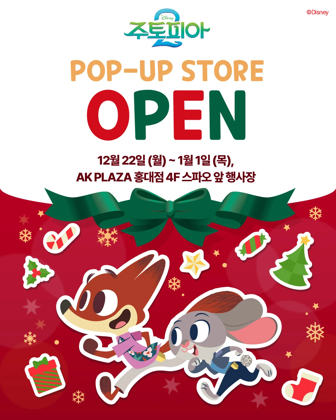 정보🐰🦊 주디랑 닉이 돌아왔ZOO! 주토피아 2 팝업이 홍대에도 찾아왔습니다 ✨ 귀여움 과다 주의… 이건 그냥 지나치기 불가💥 다양한 굿즈들을 홍대에서 만나보세요!📷 instagram @akplaza_hongdae