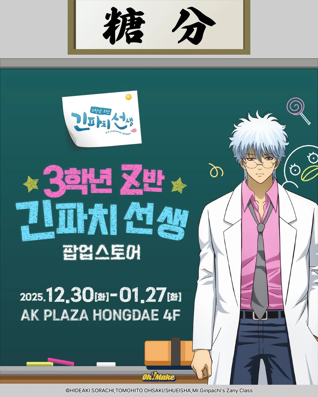 [브랜드 및 IP 설명] - '3학년 Z반 긴파치 선생'은 인기 애니메이션 '은혼'에 등장하는 캐릭터로, 개성 강한 교사 긴파치의 일상을 다룬 스핀오프 작품이다. - 은혼 시리즈의 독특한 유머와 캐릭터 매력으로 국내외 팬층이 탄탄하며, 긴파치 캐릭터 굿즈도 높은 인기를 끌고 있다. [팝업 설명] - 이 팝업은 3학년 Z반 긴파치 선생 캐릭터를 중심으로 한 다양한 굿즈를 선보이며, 은혼의 유쾌한 분위기를 담아내고 있다. - AK 플라자 홍대점 4층 공간에서 애니메이션 테마를 살린 전시와 굿즈 구매 경험을 함께 제공한다. [추천 고객] - 애니메이션과 캐릭터 굿즈 수집을 즐기는 분들에게 잘 맞아요. - 특히 '은혼'과 긴파치 캐릭터의 개성을 좋아하거나, 홍대 지역에서 특별한 애니메이션 체험을 찾아다니는 분들에게 추천해요. [실시간 방문자 후기] - 캐릭터 굿즈 종류가 다양해 선택의 폭이 넓다는 점이 좋았어요. - 팝업 내 공간 연출이 은혼 특유의 유머와 분위기를 잘 살려 재미있었다는 평가가 많아요. [주차 및 대중교통 정보] - AK 플라자 홍대점 내 주차장 이용 가능해요. - 인근에 홍대입구역 인근 유료 주차장이 걸어서 3분 거리에 자리해요. - 지하철 2호선 홍대입구역 8번 출구에서 도보 5분 거리예요. 홍대 중심지에서 3학년 Z반 긴파치 선생의 매력을 굿즈와 공간 체험으로 만날 수 있는 곳이니, 애니메이션 팬이시라면 꼭 한번 들러보시면 좋을 거예요!