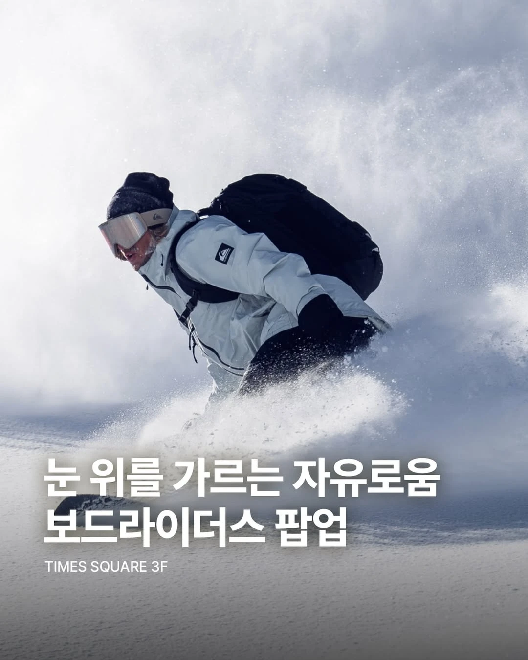 정보눈 위에서의 액티브한 순간을 그려낸 패션 브랜드 보드라이더스 ☃️ 스키웨어는 물론, 다양한 아웃도어 아이템까지! 퀵실버, 록시, 빌라봉을 한자리에서 만나는 보드라이더스 팝업이 타임스퀘어에 오픈했습니다 ✨📷 instagram @timessquare.mall