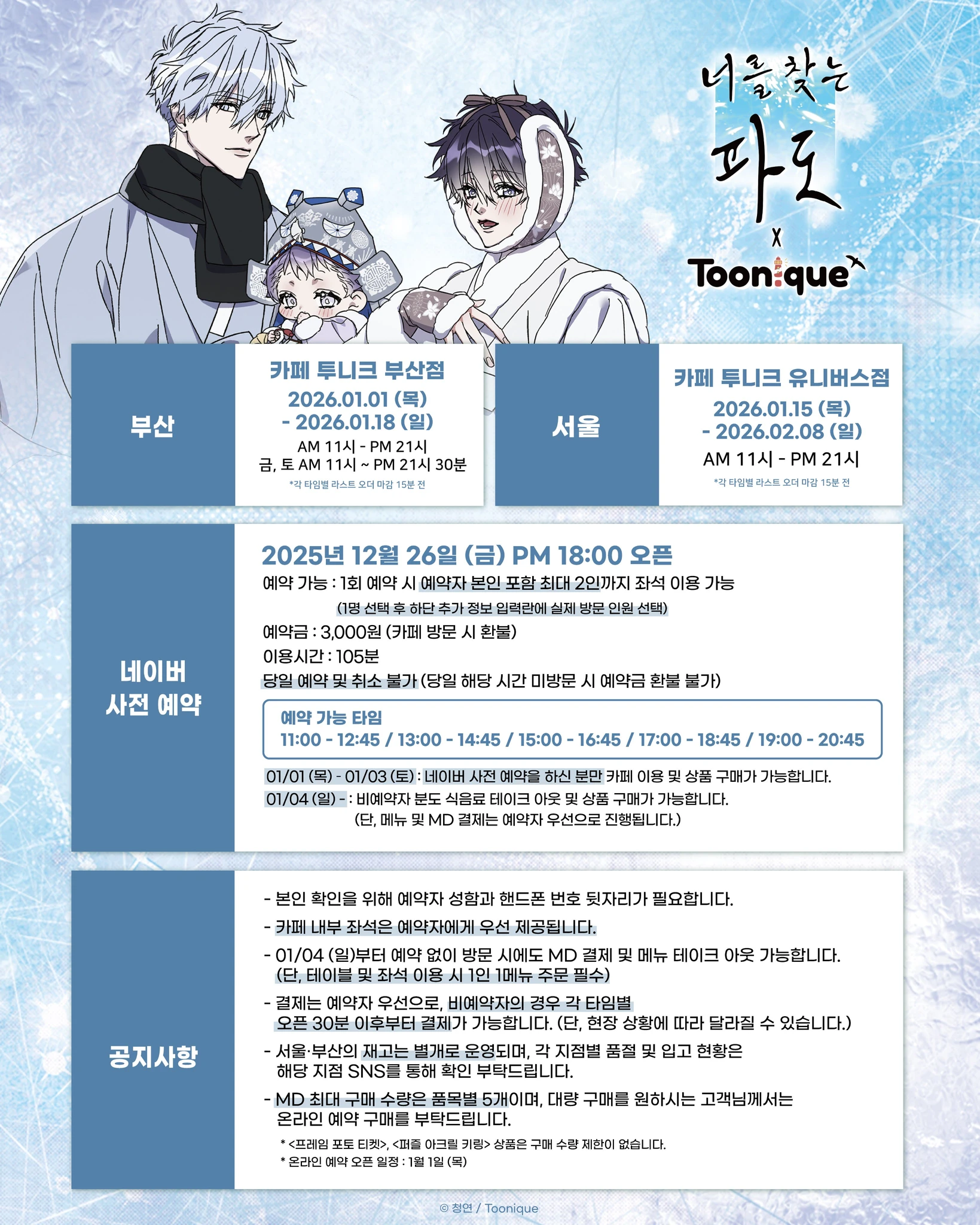 부산, 너를 찾는 파도 콜라보 카페, 투니크 부산점, TOONIQUE, 부산 팝업, 웹툰, 사전 예약, 너찾파, 청연