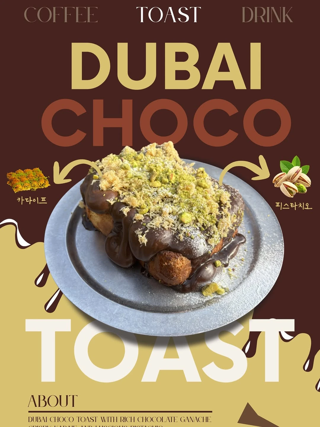 [브랜드 및 IP 설명] - 크래킹커피는 초콜릿과 커피를 중심으로 한 디저트 브랜드로, '두바이 초코 토스트'와 '두바이 쫀득 쿠키(두쫀쿠)'가 대표 인기 메뉴다. - 특히 진한 가나슈와 바삭한 카다이프를 활용한 초콜릿 디저트가 입소문을 타며 주목받고 있다. [팝업 설명] - 이 팝업은 달콤한 가나슈와 바삭한 카다이프, 진한 피스타치오 조합을 테마로 한 ‘두바이 초코 토스트’ 체험 공간이에요. - 스타필드 수원 7층에서 2026년 1월부터 4월까지 운영되며, 시각과 미각을 자극하는 디저트 중심 콘셉트로 꾸며졌어요. [추천 고객] - 달콤하고 진한 초콜릿 디저트를 좋아하는 분들에게 잘 맞아요. - 특별한 디저트 맛과 식감 경험을 찾는 분, 그리고 수원과 스타필드에서 색다른 간식 체험을 원하는 분에게 추천해요. [실시간 방문자 후기] - 두바이 초코 토스트의 가나슈가 진하고 부드러워 만족스럽다는 평이 많아요. - 바삭한 카다이프와 피스타치오 조합이 신선하고 조화롭다는 후기가 눈에 띄어요. [주차 및 대중교통 정보] - 스타필드 수원 내 주차장 이용 가능해요. - 인근에 도보 3분 거리 유료 주차장도 있습니다. - 수원역 1번 출구에서 도보 약 10분 거리로 접근하기 편해요. 달콤한 초콜릿 디저트가 궁금하다면, 수원 스타필드에서 ‘두바이 초코 토스트’ 팝업을 만나보세요. 직접 맛보고 체험할 수 있는 기회가 될 거예요!