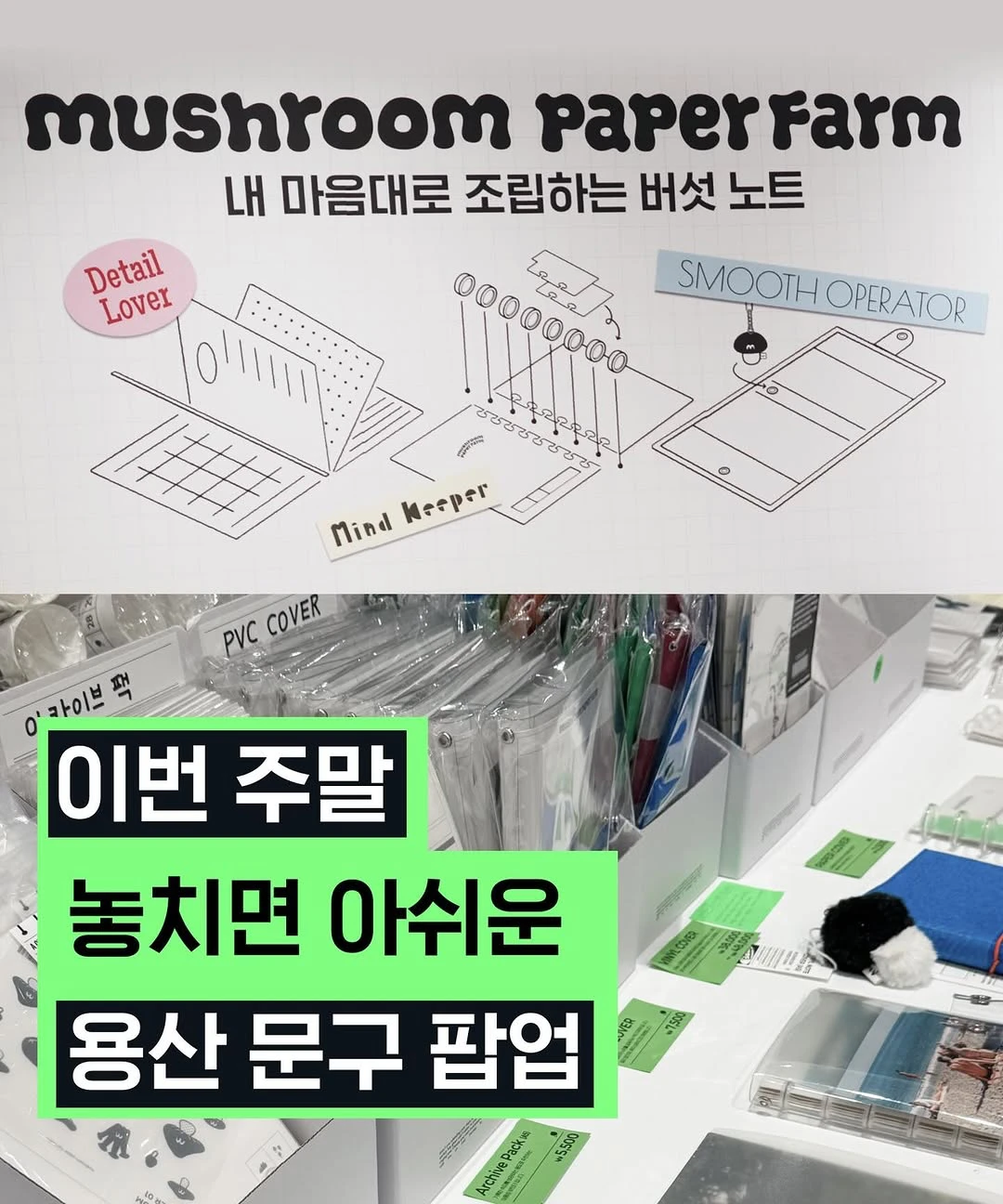 정보내 입맛대로 만드는 DIY 노트를 만들 수 있는 머쉬룸페이퍼팜이 아이파크몰 용산점에 찾아왔습니다 📓 손으로 만드는 기록의 즐거움을 머쉬룸페이퍼팜 팝업에서 경험해보세요 ✨📷 instagram @mushroom_paper_farm
