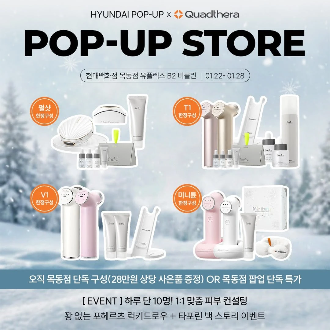 정보쿼드쎄라가 현대백화점 목동점에서 1:1 피부 컨설팅 중심의 이벤트를 진행해요 💆♀️✨ 전문적인 피부 컨설팅은 물론, 목동 팝업에서만 만나볼 수 있는 한정 구성과 다양한 체험 혜택까지 현장에서 직접 경험해보세요 🤍📷 instagram @quadthera.official