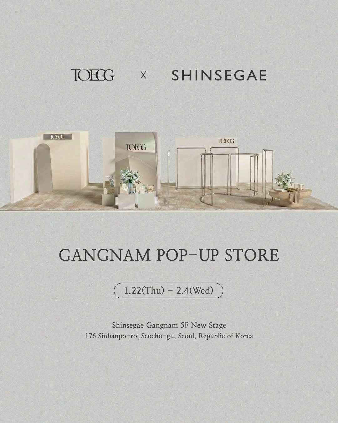정보여성의 발끝 모양을 뜻하는 EGG TOE에서 영감을 받은 브랜드, 토그의 팝업 스토어가 오픈했어요 👞✨ 중성적이면서도 모던한 감성, 지속 가능한 디자인을 바탕으로 한 토그만의 실루엣을 현장에서 직접 만나보세요 🤍📷 instagram @toegg.official