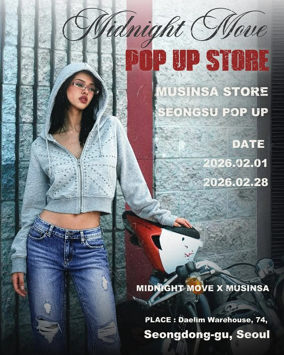 정보미드나잇무브 팝업이 무신사 대림창고에서 팝업스토어를 오픈했어요 🖤 2026년 봄 신상 제품을 선발매로 만나볼 수 있고, 현장 구매 고객을 위한 다양한 사은품과 이벤트를 만나보세요 🙌🏻📷 instagram @midnightmove_official