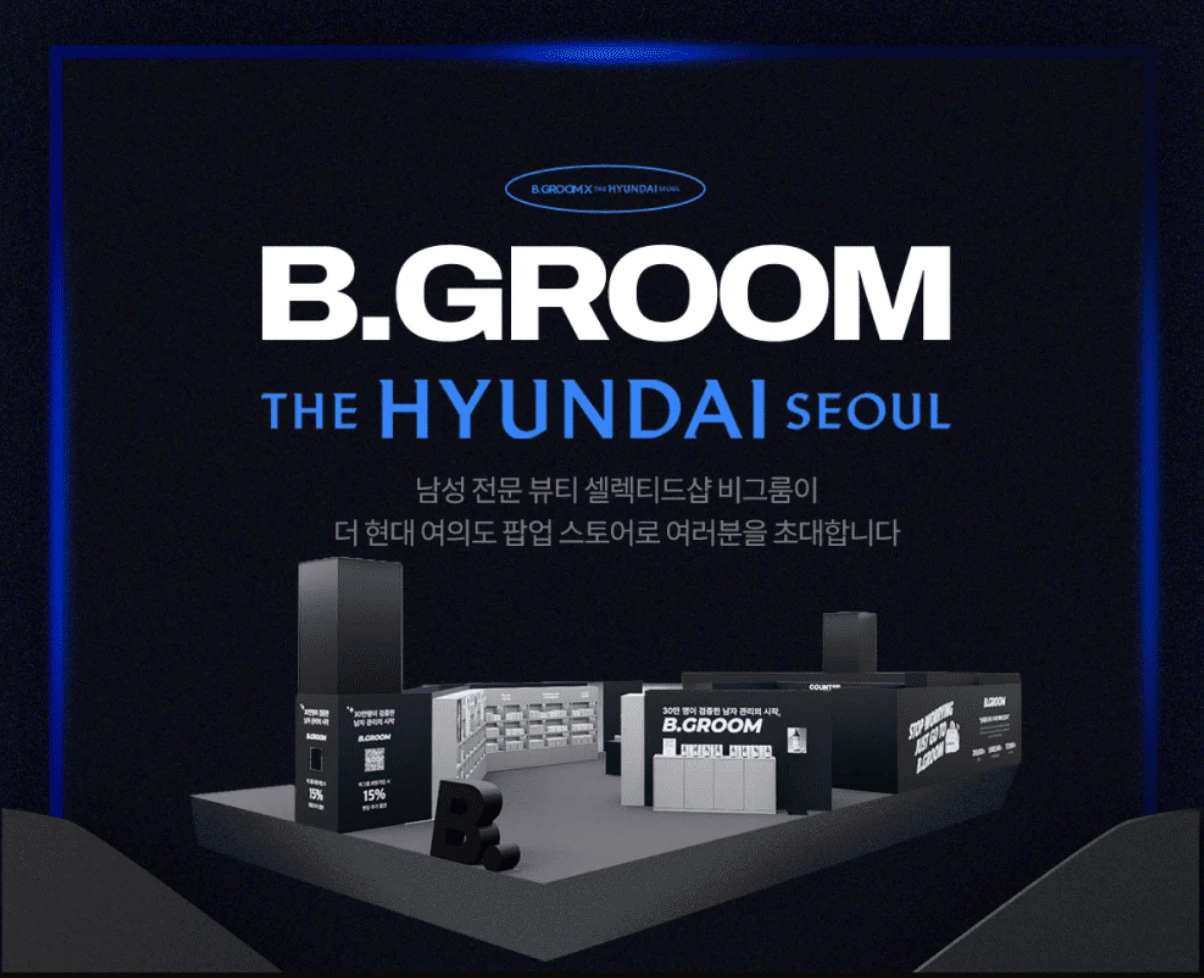 정보남성 전문 뷰티 셀렉트숍 비그룸이 더현대 서울에서 팝업스토어를 오픈해요 ✨ 에스네이처, 토리든, 비레디, VT코스메틱 등 다양한 남성 뷰티 브랜드를 한자리에서 만나보세요 🙌🏻📷 비그룸 홈페이지