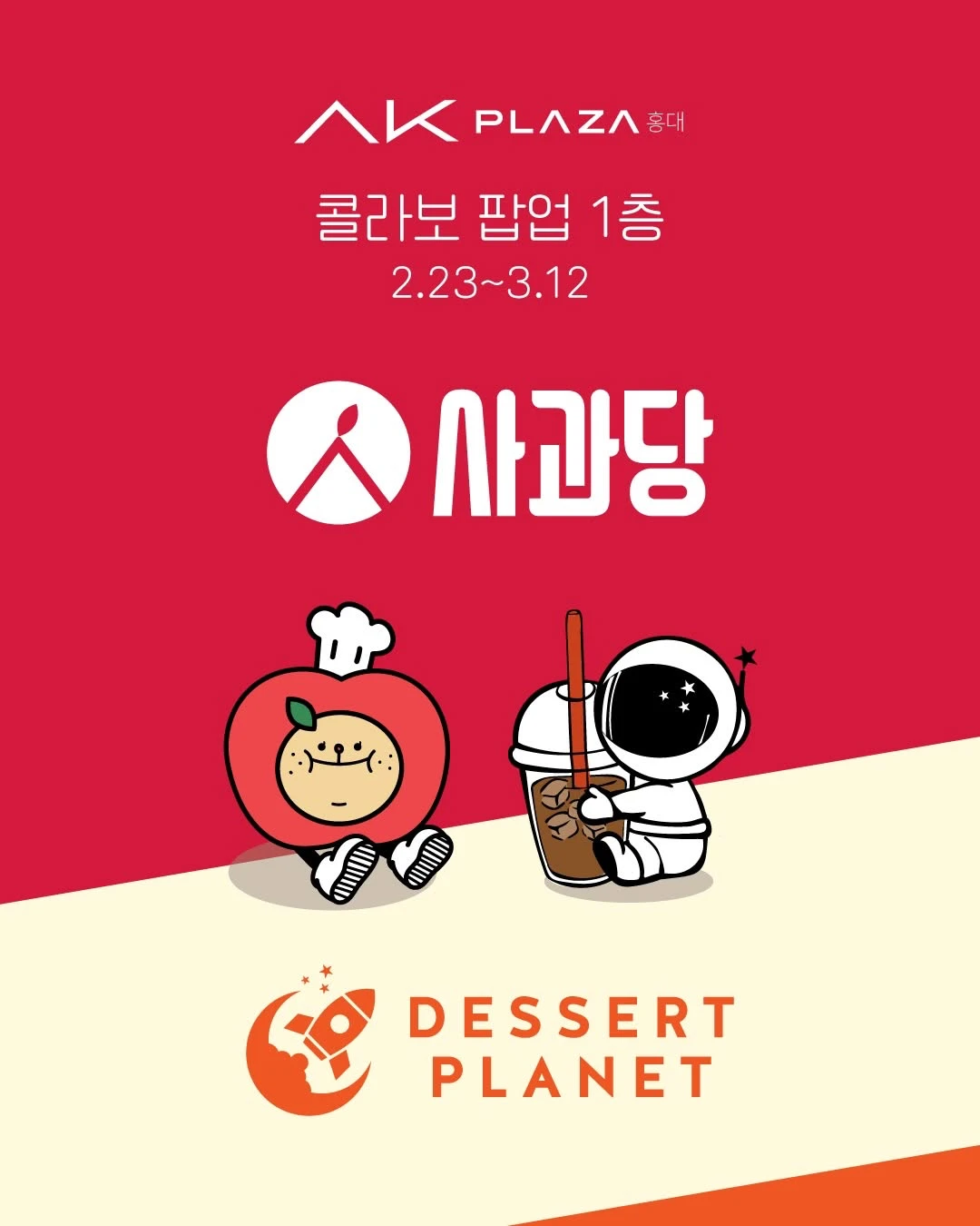 정보시그니처 사과파이로 사랑받는 디저트 브랜드 사과당이 홍대에 팝업으로 찾아왔어요 🍎✨ 사과파이부터 다양한 페이스트리, 그리고 이번 팝업에서 새롭게 선보이는 크로넛까지 모두 만나보세요 🥐🍰📷 instagram @akplaza_hongdae